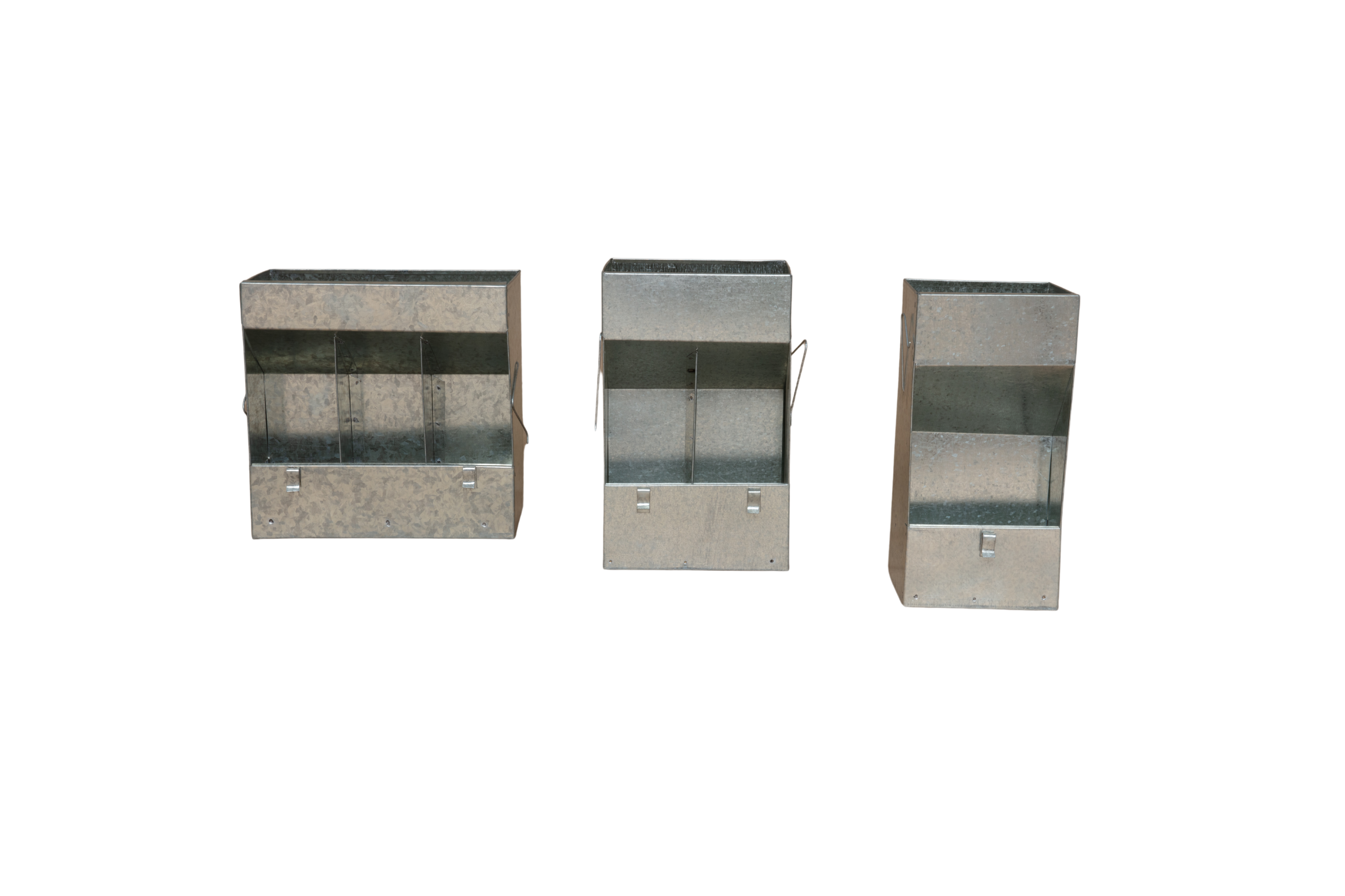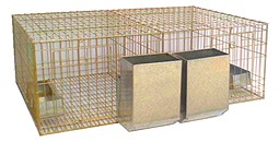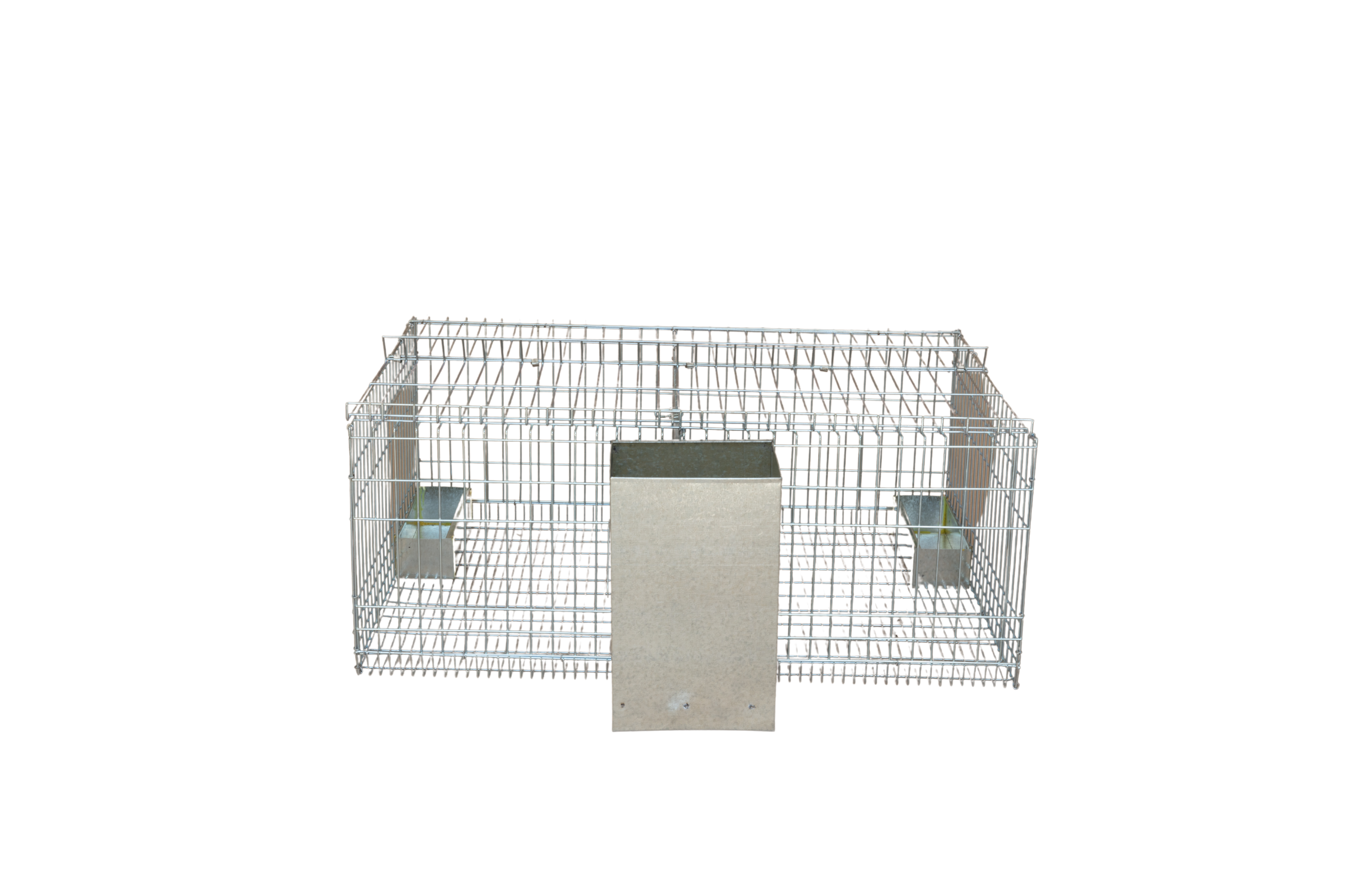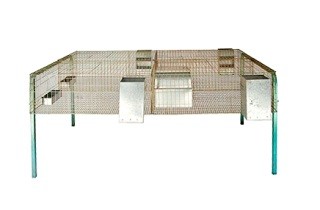 El módulo komplett es uno de los más completos, ya que sirve para la engorda, reposición y reproducción, teniendo la ventaja de poder colocar un nido por compartimiento o quitarlo según las necesidades, consta de 5 compartimientos y es elaborado en alambre calibres 12 (2.67 mm), 14 ( 2.03 mm) y 10 (
