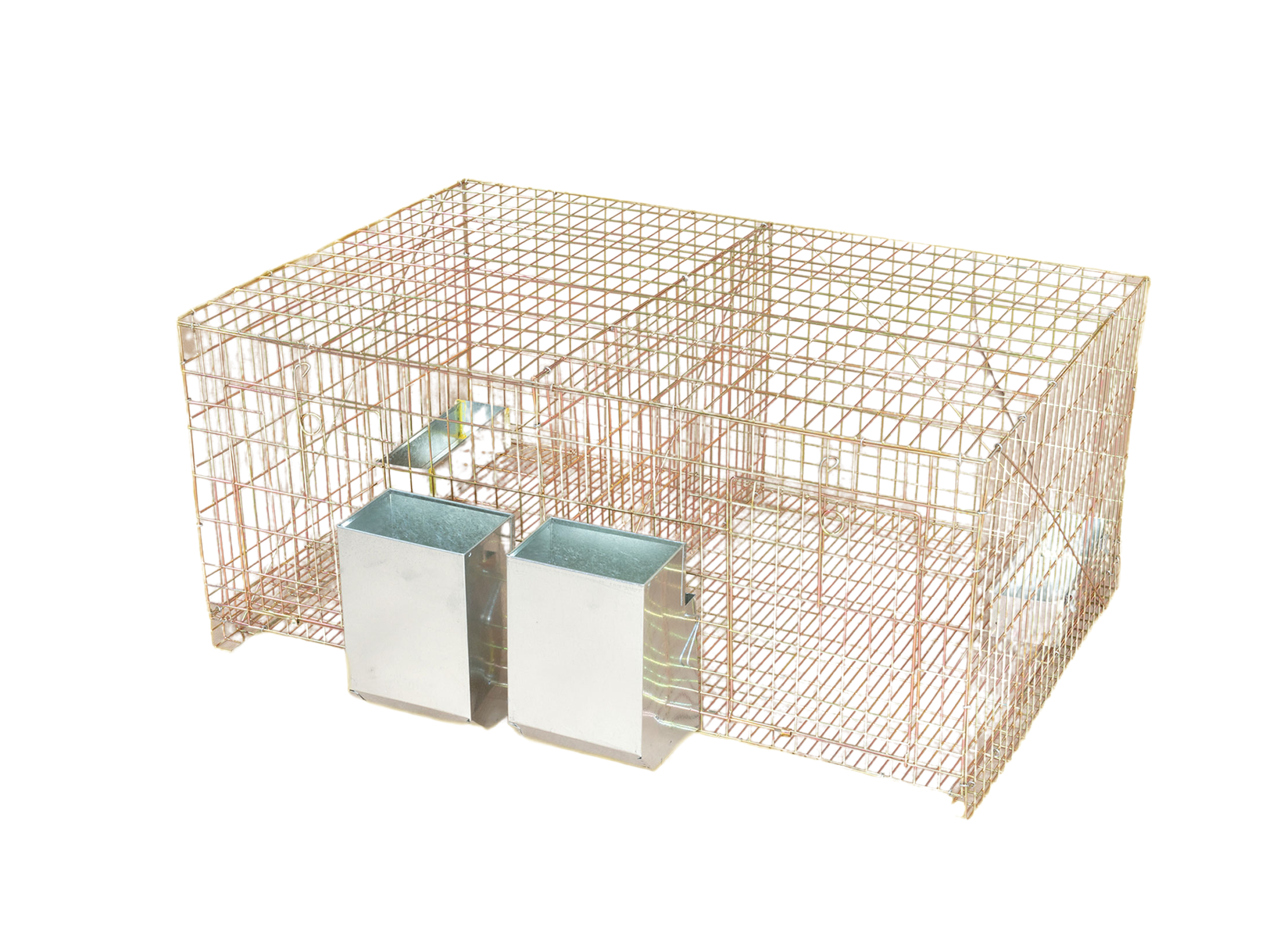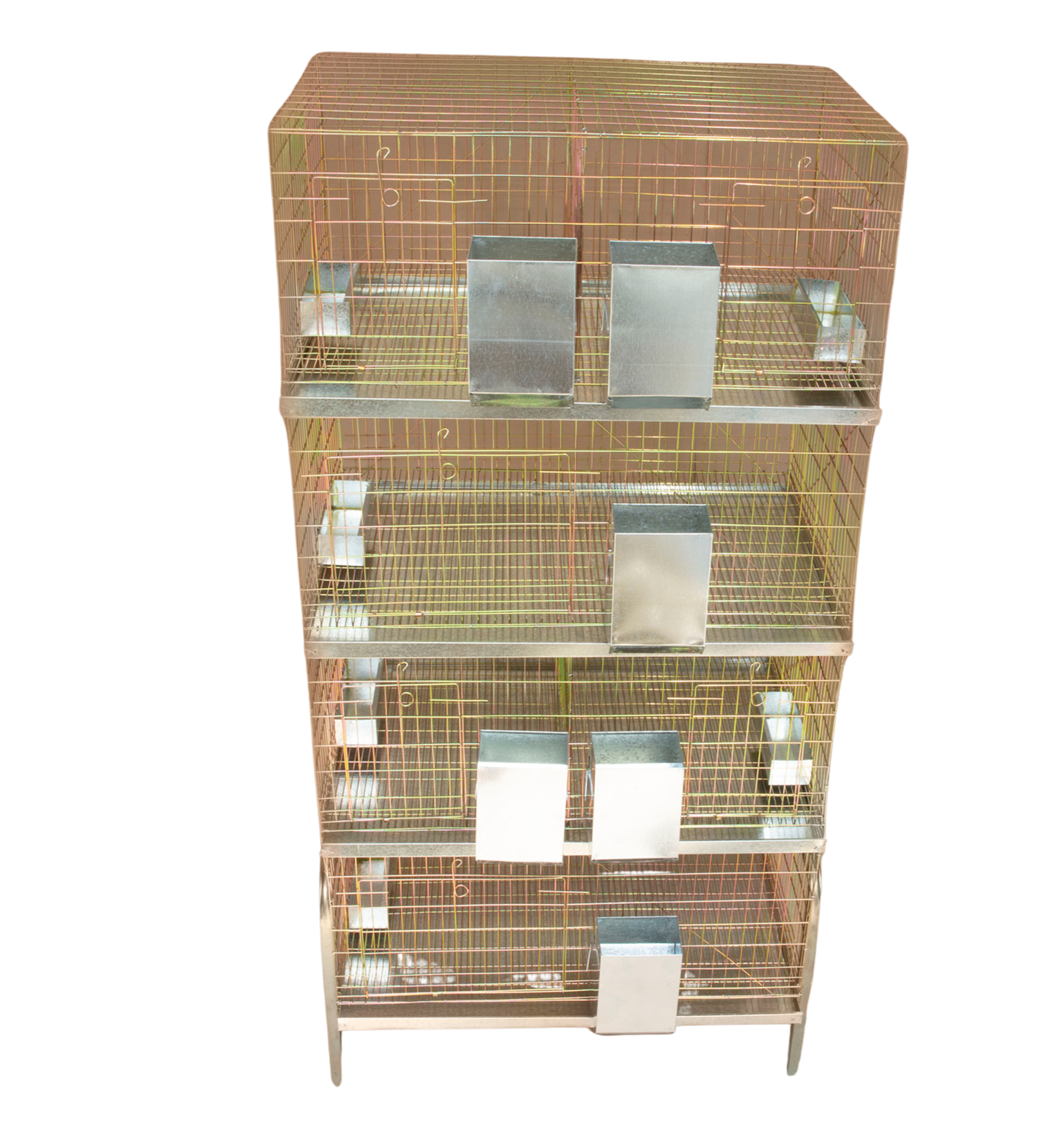 La jaula tipo europea es elaborada en alambre calibres 12 (2.67 mm) y 14 (2.03 mm) combinados con un acabado en tropicalizado ácido (dorado