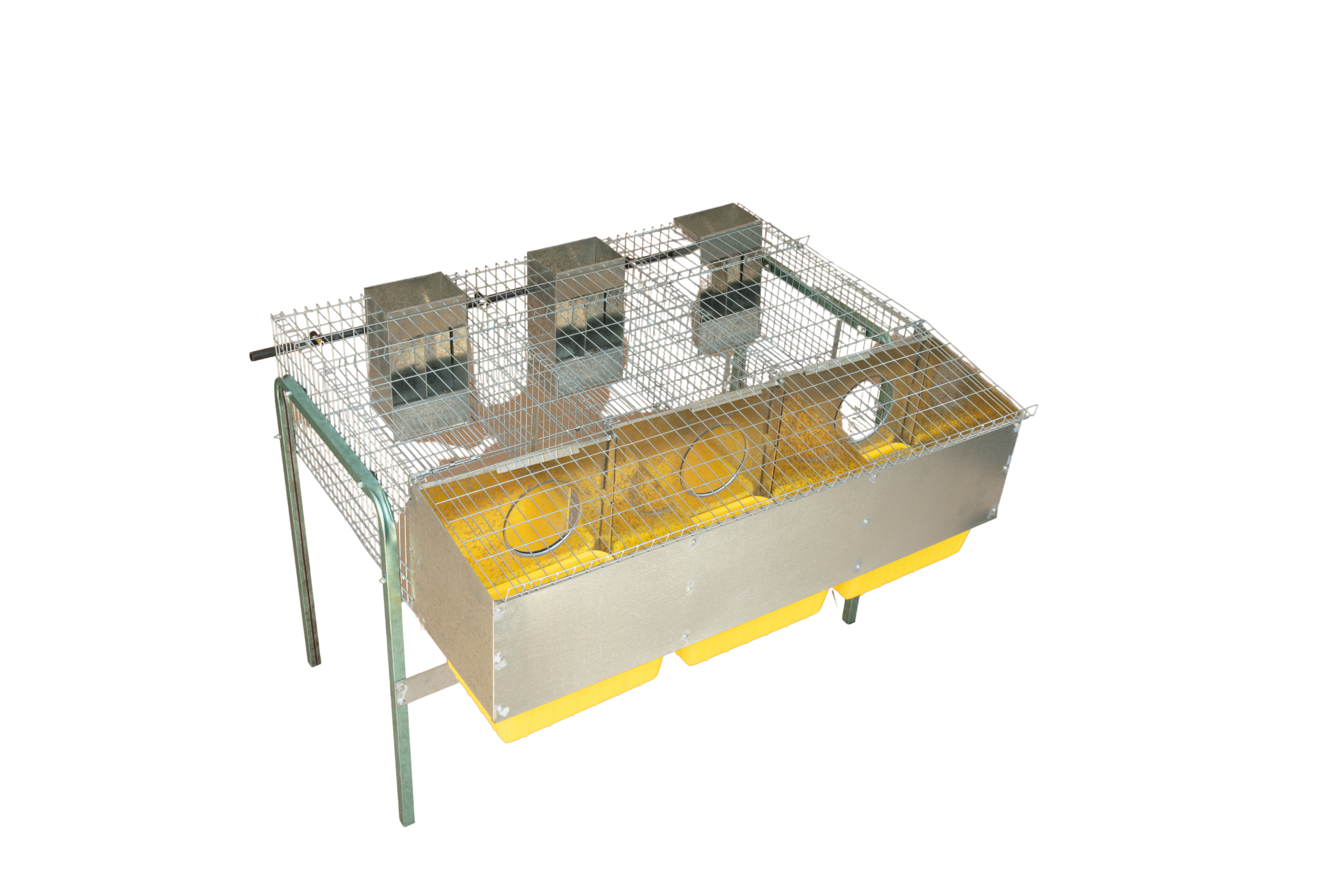 Jaula idónea para el manejo de las hembras en el periodo de gestación, parto y lactancia, ya que posee nidos abatibles incorporados, lo que nos permiten utilizar la jaula para la engorda.